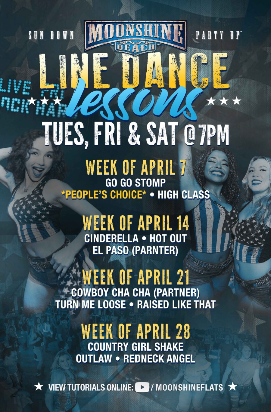 Line Dance Lessons at Moonshine Beach